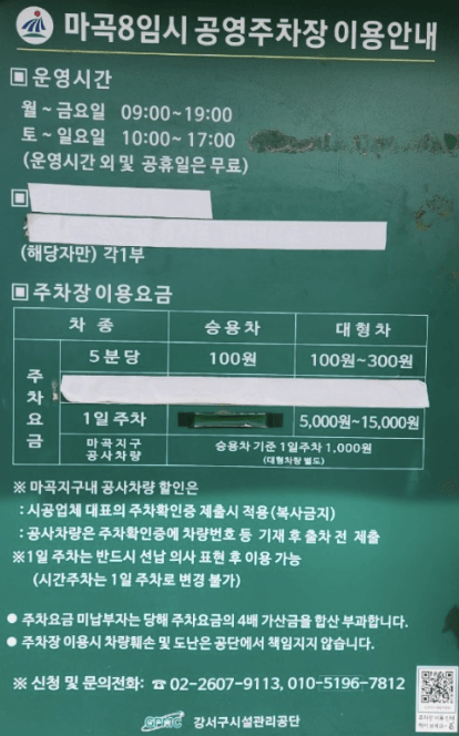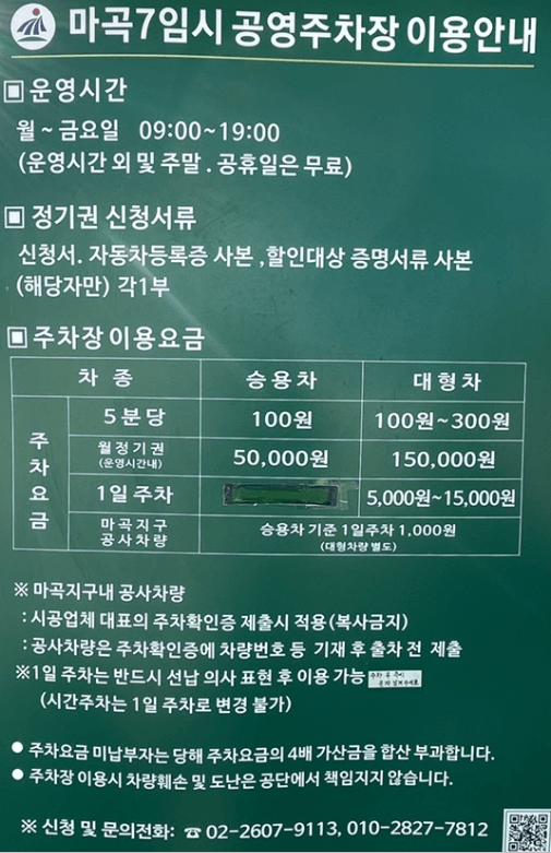 마곡 7, 8 공영주차장 이용요금 및 운영시간