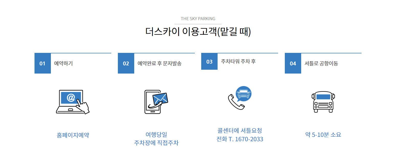 더스카이파킹에서 주차 후, 더스파이킹에서 운영하는 셔틀 타고 공항으로 이동하시면 됩니다.(5~10분 소요)