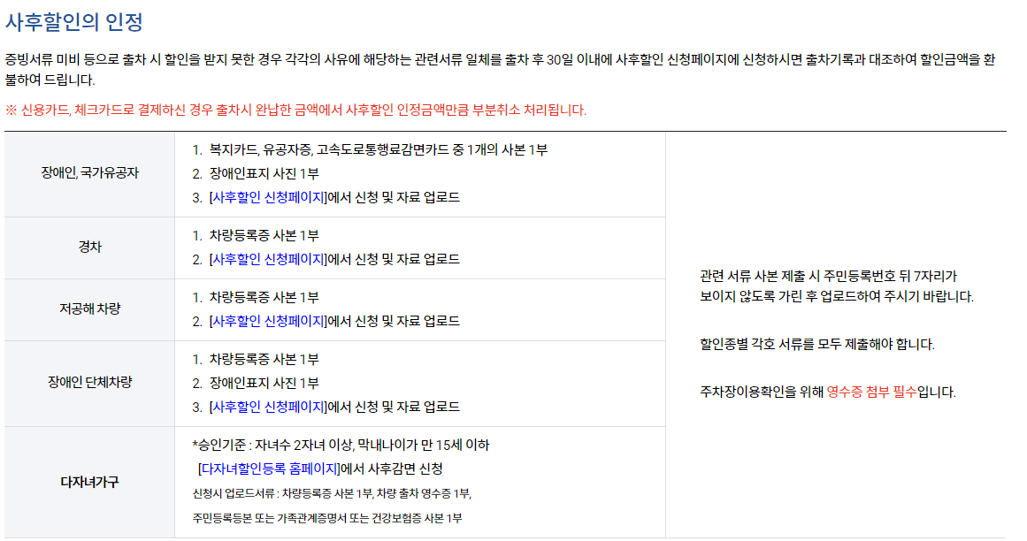 예시) 경차로 24시간 주차시 할인전 요금 20,000원→할인된 요금 10,000원