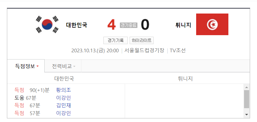 한국 대 튀니지의 평가전 경기 기록 정보 확인하고 싶으신 분들은 링크 남겨드릴테니 클릭해보시기 바랍니다.