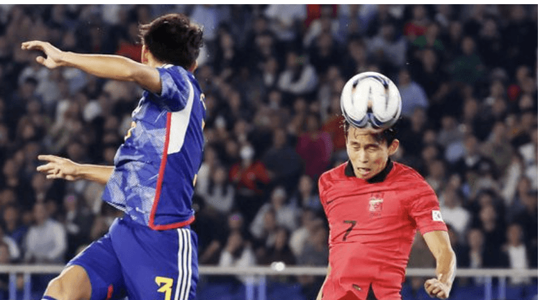 경기 시작 전반 2분만에 일본 우치노선수가 패널티지역 중앙에서 골대 오른쪽 위를 향하여 골을 넣으며, 선제 실점하여 대한민국은 좋지 않은 경기력을 보였습니다. 그러나 자만하던 대한민국팀에게 전반 27분 정우영 선수의 패널티지역 중앙에서 골대 왼쪽 위를 헤딩 골로 만회하며 1대1 동점을 만들었습니다. 정우영 선수는 이번 대회8번째 골을 몰아 넣으며,득점 단독선두에 올랐습니다. 와일드카드인 정우영 선수의 헤딩이 아주 일품이었습니다.