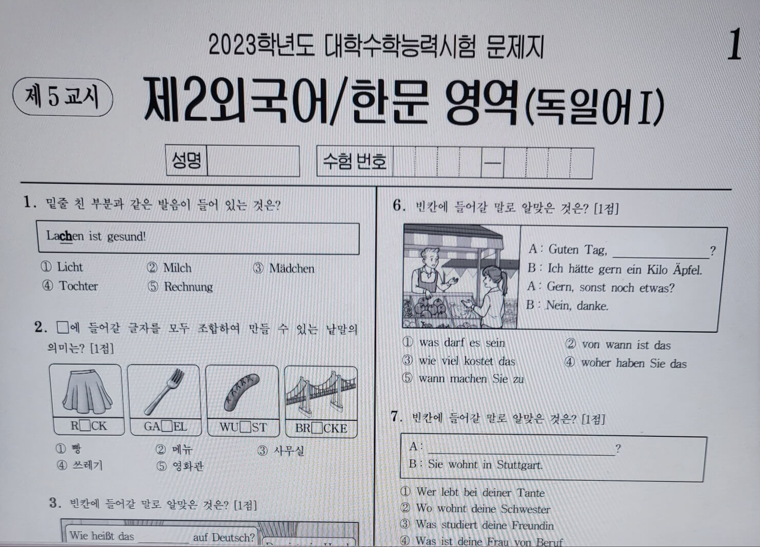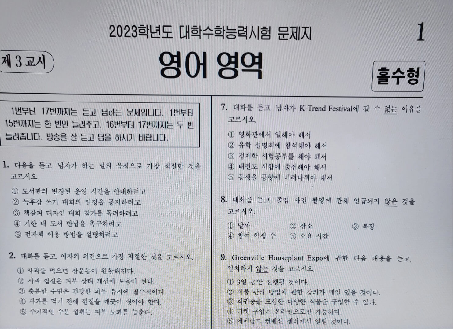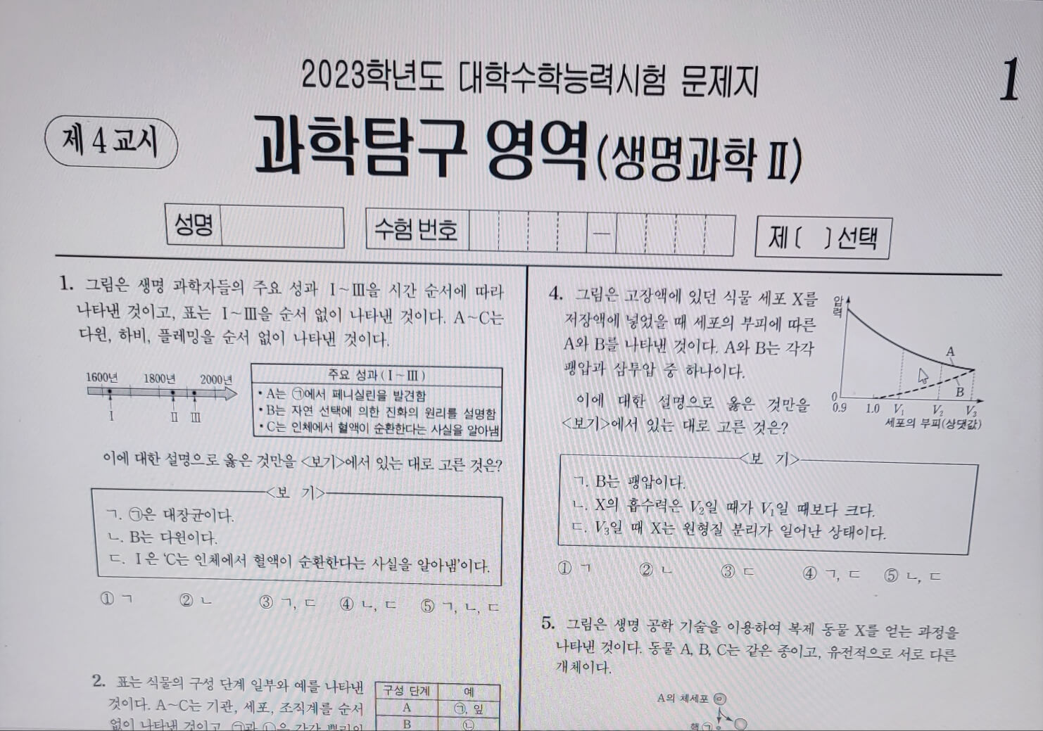 ▶문제지 문형 확인 및 부정행위 방지를 위해 매 교시 종료후 문제지는 회수하여 별도 보관합니다.
