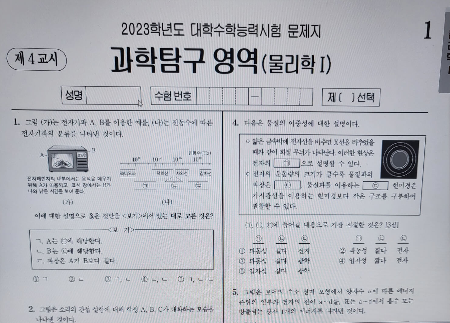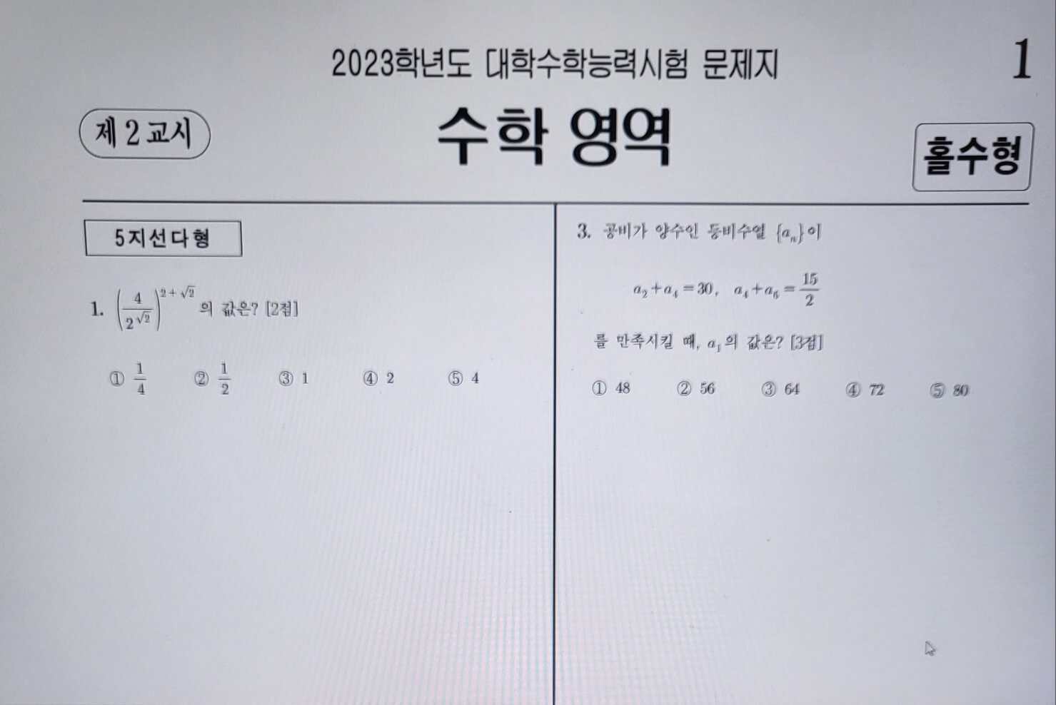 ※다만 국어,수학 영역은 제공받은 문제지 전체를 올려놓고 문제를 풀되, 본인이 선택한 과목의 문제인지 확인하고 풀어야합니다.