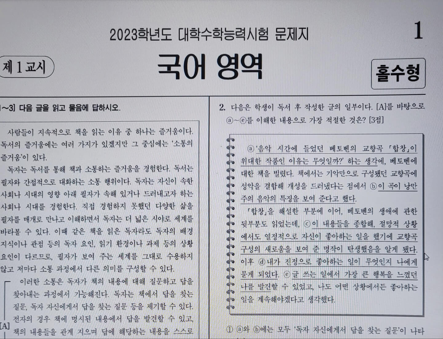 •국어 영역: 화법과 작문, 언어와 매체 중 선택한 과목 풀기